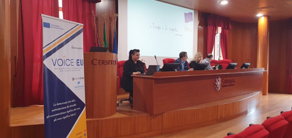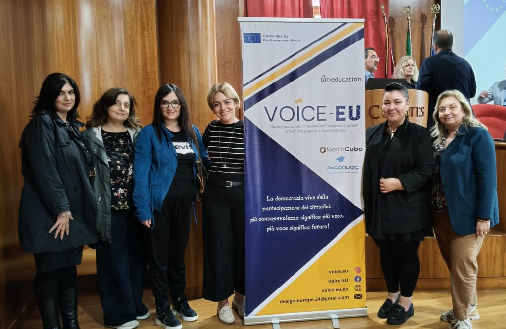 Oggi torniamo in aula da professioniste, come capofila del progetto VOICE-EU, cofinanziato dal programma Erasmus+. Un progetto che promuove la partecipazione europea attraverso strumenti educativi innovativi, percorsi di formazione e pratiche collaborative.